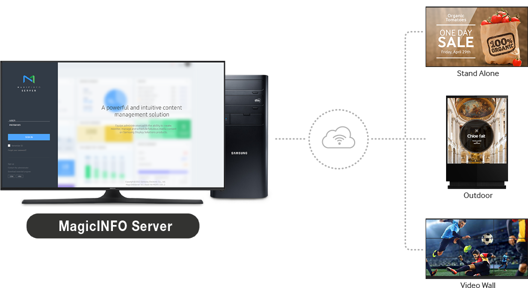 MagicINFO RM Server is a network-based management solution designed to enable easy and efficient control of devices.