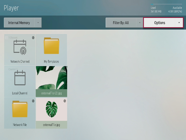 • Local channel: You can play the contents that are saved in external memory or external memory.